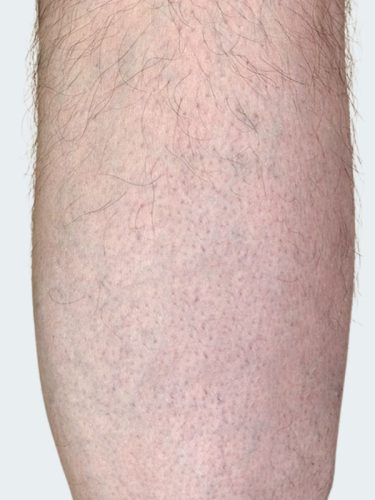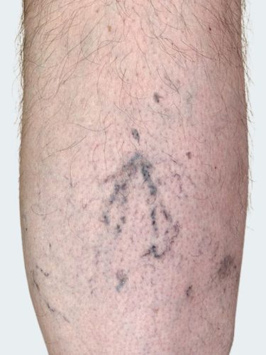 Part of a leg (calf) of the man with varicose veins and capillaries medical treatment.